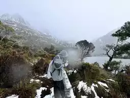 Along the way, you'll encounter Tasmania's unique flora, such as buttongrass, myrtle, sassafras, fagus, and King Billy pines.