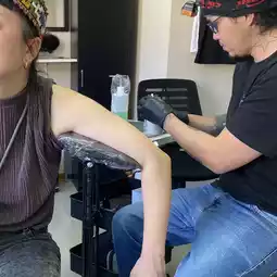 In the afternoon, we suddenly had no plans. My friend had been thinking about getting a tattoo for the past few days, so we decided to get one! It just so happened that the tattoo artist we met a few days ago was nearby. She chose a design with Peruvian characteristics and got the tattoo done very spontaneously.