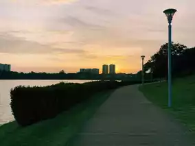 As the golden hour paints the sky in warm hues, Putrajaya Lake transforms into a shimmering mirror, reflecting the iconic pink domes of the Putra Mosque. Gentle ripples catch the light, creating a scene straight out of a postcard. Locals and visitors gather along the promenade, some strolling, others capturing the moment as the call to prayer softly echoes in the distance. The air feels calm yet alive, blending serenity with grandeur. In this fleeting hour, Putrajaya reveals its most magical side, perfect for both photographers and dreamers.