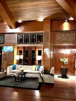 Escape the city and unwind at Cyberview Resort & Spa, a serene retreat nestled in the heart of Cyberjaya. Surrounded by lush greenery and landscaped gardens, the resort features charming wooden architecture inspired by traditional Malay design, creating a warm and rustic ambiance. The spacious, beautifully designed lobby welcomes guests with a blend of elegance and natural charm.