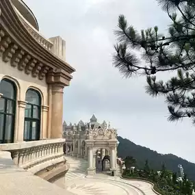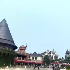 - When you get to the top, there will be another cable car🚠 that takes you up to the French village and Fantasy Park. It takes about 2-3 minutes to reach your destination. This part is a large area. There are restaurants and many landmarks to take pictures. Today, some areas are closed for renovation and repair, but there are still many places to take pictures. Walking around is like walking in a palace, a castle in a fairy tale. It's sooooo beautiful🥹