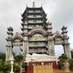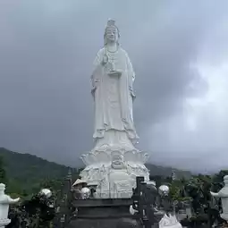 Linh Ung Pagoda Danang is a temple with a large Guan Yin statue facing the sea, about 20 minutes from Da Nang city, located on Son Tra mountain. You can take a taxi or rent a motorbike. On the way up to the temple, you will pass Son Tra Marina cafe and a photo corner of a bamboo boat. You can stop to take a picture before coming to see the beauty of the temple. Inside the temple, it is well maintained and clean. There are some slopes. #Travel #danang #Vietnam
