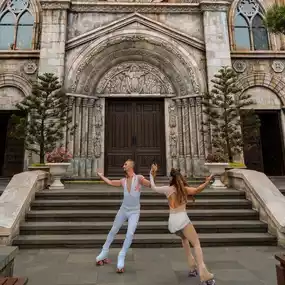 🏰 Travel to a European feel near Vietnam with the most popular landmark Ba Na Hills, Da Nang. 🚠 Take a cable car through the fog to the French Village, a magnificent French village located on the top of the mountain. The atmosphere up there is very good, the air is cool and comfortable. 🎡 There is a fun Fantasy Park amusement park to play and another highlight that you must not miss, the Golden Bridge, the giant hand bridge, amidst the fog, a great photo spot. It is recommended to come early in the morning or in the evening, there will be fewer people. As for the weather, it depends on your luck. When Fern went, there was very thick fog. She sat and waited and everything, the fog was very thick. And the weather is quite changeable. Sometimes it's clear, sometimes it's foggy. I couldn't adjust in time. 🤣