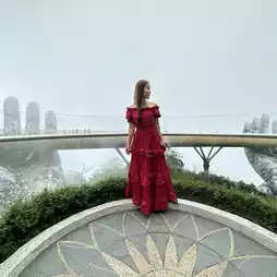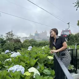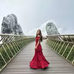 A check-in point of Da Nang, which is a 150-meter-long golden yellow bridge, 1,000 meters above sea level, supported by two giant stone hands, as if the bridge is floating in the mist.
