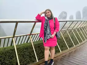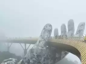 Misty weather didn't stop us from seeing the beauty of the Golden Hand Bridge in Danang 😍