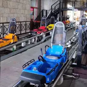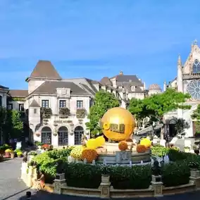 On top, there are restaurants, hotels, souvenir shops, coffee shops, ice cream shops. There are many types of buildings and many photo spots. They play music with a theme similar to Disneyland all the way.