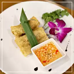 Bun cha with grilled pork, vegetables, and noodles dipped in a sour sauce, really crispy and savory spring rolls,