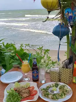 The photo is of the famous restaurant La Plage at An Bang Beach! Here, you absolutely must try the bullet squid 🦑