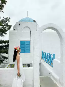 Experience the charm of Santorini right in Da Nang at the picturesque Son Tra Marina. Nestled by the port, this hidden gem boasts European-inspired architecture with its signature blue and white color scheme, reminiscent of the Greek island.