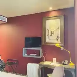 🍷The room was decorated in red tones. While not very spacious, it had a great atmosphere and offered views of the village. The room was fully equipped with amenities, including a TV, air conditioning, and a water heater. The night air was cool and refreshing.