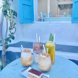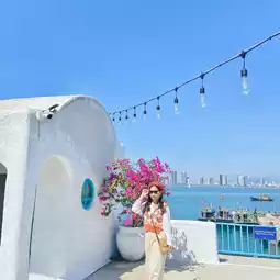 🫧The cafe is located not far from Lon Ung Temple. Decorated in blue and white tones, very beautiful. Located by the sea and the port. There will be security guards to watch out for people falling into the water.