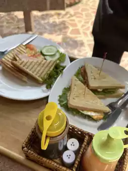 While looking for a cafe near our accommodation, we visited this one which had the highest Google Map rating. It was surprisingly large, and the menu was incredibly diverse. We ordered sandwiches and pies for brunch, and the food was unexpectedly delicious. I was amazed, and I really loved the cafe atmosphere that blended with nature.