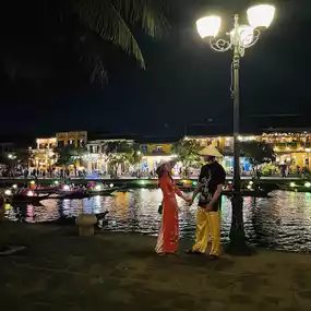 In Hoi An, we wore Ao Dai, the traditional Vietnamese costume, and walked around together. We enjoyed the Vietnamese atmosphere with the clothes