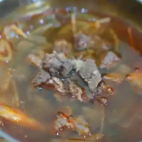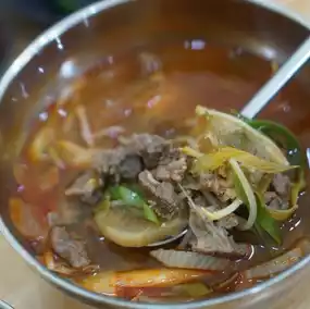 A delicious Danang Korean restaurant with a spicy soup with plenty of beef and vegetables,