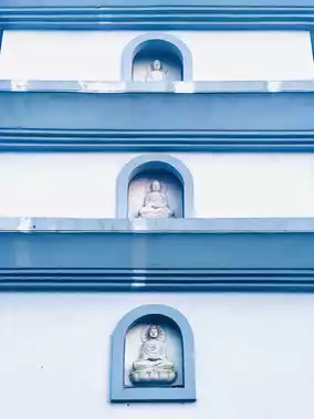 This Stupa was designed to comprise nine stories that host white marble figurines of Sakyamuni Buddha directing his face to four directions of the mortal world.
