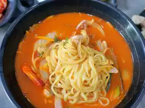 The noodles are chewy and the soup tastes like meat Jjamppong, so it's the best!! For those who love seafood, I recommend the octopus jjambbong!!
