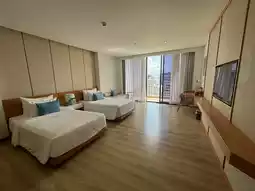 There is an infinity swimming pool on the top floor, where guests can swim while enjoying the beautiful view of the beach. The hotel's breakfast is delicious, the food quality is very good, and the environment of restaurant looks beautiful. The hotel is very new. The room is comfortable and facilities are excellent. The service is also good.