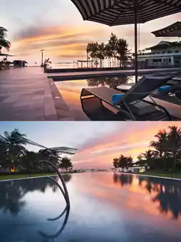 Located in the exotic city of Da Nang, Vietnam, Pullman Danang Beach Resort is a beachfront property that offers stunning natural beauty. The hotel is situated directly on the beautiful beach of Da Nang, allowing you to embrace the boundless sea and feel the gentle sea breeze on your face. The hotel's private beach has soft, fine sand and crystal-clear water, making it the perfect place to enjoy the sun and beach and relax. In addition, the hotel is surrounded by lush trees and fragrant flowers, offering a strong tropical atmosphere and making you feel as if you are in a paradise away from the hustle and bustle of the city.