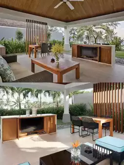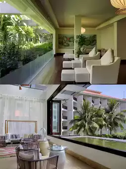 The overall design of the hotel is a clever blend of Southeast Asian style and modern elements. The exterior of the building is in a tropical resort style, with bright and vibrant colors and smooth and natural lines. The lobby is spacious and bright, with elegant and atmospheric decorations. The dragonfly decorations in the central pool add a touch of liveliness and fun. Looking out from the lobby bar, you can enjoy the beautiful view of the infinity pool and the vast sea, which is refreshing.