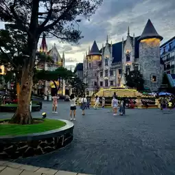 Part 1 The first night we stayed at #BanaHill. Boarding at 08.15 - 10.30 local time **(Lots of people at immigration) Departed from the airport at 11.30. Traveled to BanaHill using Grab. Waited to buy tickets to check in to board the train. In the morning, there were a lot of people as usual. There were also a lot of tours. After going up, Bang waited to check in at the accommodation to leave his luggage. But luckily, on a weekday, he could check in to the room at 2 pm. Take a shower, but just go eat. Walk around and take pictures. Every corner is beautiful. We like it. The light is beautiful when it's almost dusk. #Travelwithtrip2024