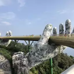 The Golden Bridge is one of the most famous photo spots in Ba Na Hills. Opened in 2018, this 150-meter-long bridge is designed as a golden curve supported by two giant hands. Located atop the hills, it allows visitors to stroll and enjoy the stunning views of the surrounding valleys and mountains.