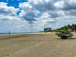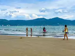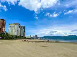 On a clear day, the white sands of My Khe Beach in Da Nang glisten under the sunlight, and the endless blue sea stretches out, making you feel as if you have stepped into a watercolor painting. As you walk along the beach, the soft sand embraces your feet, and the cool seawater gently touches you, refreshing your entire body.