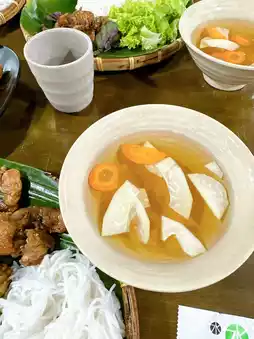 In Japan, bun cha is eaten with cold dipping sauce, but in the original place, it is hot dipping sauce 👀