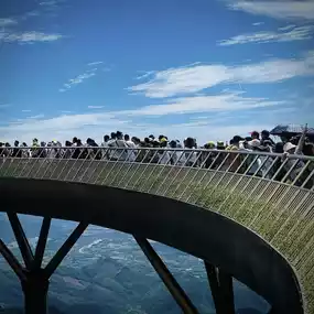 🧊 Tips. Go take the cable car early in the morning, around 7:00 AM. If you go later, there will be more and more people until the bridge is full, as seen in the reviewed picture.