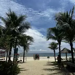 The beach is not very crowded at least not at all times (local people usually come when the sun starts setting), has a variety of food & drinks spots. Has accessible parking. The sand is clean and occasionally you can meet some marine friends such as tiny crabs! 🥹