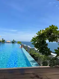 The rooftop infinity pool offers stunning views and clear water, making it a great place to take photos.