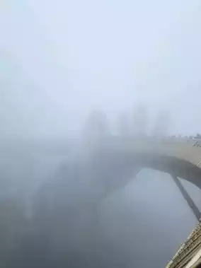 When it rains in the morning, the fog is thicker and you can't see anything, but after lunch, the fog seems to clear up a little.