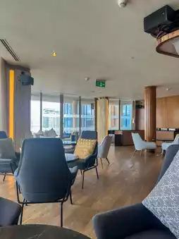 I recommend the outside seats as you can see the Han River and the sea