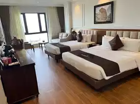 Monarque Hotel is known for its rich dining options. Breakfast offers a variety of choices, with different options every day. The traditional Vietnamese pho is especially popular. Free desserts and drinks are available during afternoon tea (2:00–5:00 pm), and free Vietnamese pho is available in the evening. The rooftop bar offers live music performances to add fun to your night.