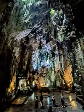 The Marble Mountains are home to many temples and pagodas, such as Tam Thai Pagoda, Linh Ung Pagoda, and Chua Tam Thai. There are also numerous limestone caves with intricately carved statues of Bodhisattvas and Arhats, making it a fascinating place to explore.