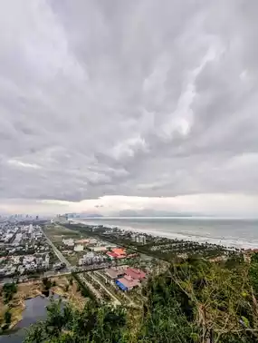 The main peak to visit is Thuy Son (Water Mountain), the largest of the five. It has two observation decks: the East Sea Viewing Pavilion and the West River Viewing Pavilion. As their names suggest, one offers a view of the coastline, while the other overlooks the Han River. The scenery is beautiful, although it was a bit cloudy on the day of our visit.