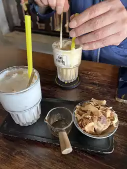 When you come to Da Nang, you must have a coconut smoothie!🍀 This is the number 1 cafe you must visit when you go to Da Nang city.🥰 The location is good, and above all, the interior of the cafe is really pretty✨. I ordered coconut coffee and coconut smoothie and it cost about 120,000 VND. It's so delicious! 🍹 Window seats are popular. There seems to be air conditioning inside, but it's still cool enough that it doesn't really need it❄️