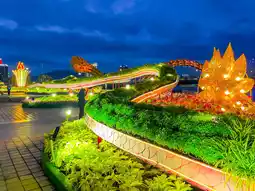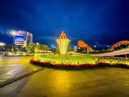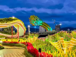 When you drive or motorbike along the Danang Han River in the evening after the sun has set, you will come across a gorgeous park near the Dragon Bridge.