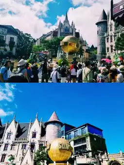 Starting at around 8 AM, we departed from our accommodation in Da Nang city and arrived at Ba Na Hills after about an hour. Upon entering, we took the cable car to the summit, where the Golden Bridge appeared, giving the sensation of walking above the clouds. After snapping a few photos, we moved on to the French Village, enjoying a leisurely stroll while admiring European-style buildings and street performances.