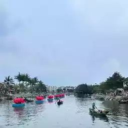 - Wake up early to paddle a bamboo basket. We bought a package from the accommodation for 4 people. The price including transportation is 900,000 dong (I just found out later that buying it yourself is cheaper ><)