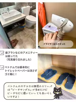 ◆ From our experience, many Vietnamese hotel rooms do not have new disposable slippers, and there are beach sandals!