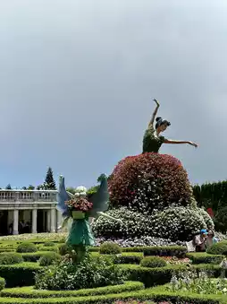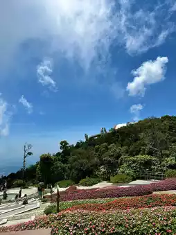 This tranquil garden is a masterclass in landscape artistry. A wide passage adorned with vibrant floral arrangements leads you into an enchanting space where nature and sculpture live in perfect harmony. Stone benches invite you to sit and soak in the cool highland breeze, while stone-carved deities, mythical beasts, and serene figures watch over in silent grace. There’s a mystical stillness in the air—a contrast to the lively crowds just steps away.