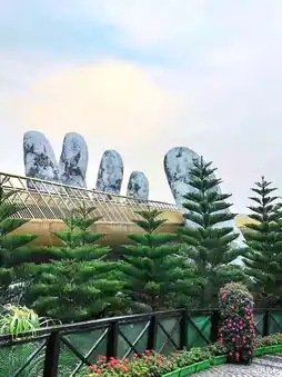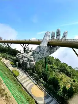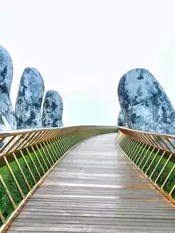The Golden Bridge in Vietnam feels like something out of a dream. Held up by two giant stone hands, this golden walkway stretches across the hills of Ba Na, offering stunning views of the mountains and mist below.