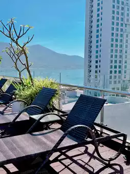 This is Dolphin, a famous cost-effective hotel in Da Nang. The rooftop view is really great, and there is a swimming pool on the rooftop, so it was great to enjoy swimming and traveling at a good cost-effective price. The room was also very clean, and it is near My Khe Beach, so I recommend it as a good place to enjoy swimming in the ocean. #Da Nang Travel #My Khe Beach #Da Nang Hotel Recommendation