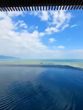 There is Bikke Beach across the street. It is in an area with strong waves, so it is good for surfing. There are many hamburger and coffee shops behind the building, so please refer to them.