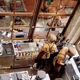 • The shop design is raw and cool 🏭 But still warm and inviting