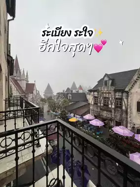 At 5:00 a.m., I woke up and looked at the first light of the day. It healed my heart the most. I was lucky. Even though it rained at night, the morning was beautiful. It was worth staying here for 1 night. I didn't finish visiting the French village. The bed was soft. I slept comfortably and got the most rest. In the room, there was a wardrobe, a bathrobe, slippers, an ironing board, an iron, an air conditioner, a heater, hot water, a refrigerator, 2 bottles of mineral water, a table, chairs, a sofa, a bedside lamp, a ceiling fan, shampoo, soap, 2 rolls of tissue, a toothbrush, toothpaste, a comb, and many more. Overall, it was very complete. It was a key card system. There was a convenient elevator to go up and down and wifi. The staff helped carry the wheeled luggage to the room. The service was very good. ðDisadvantages: The room walls are a little light. Heard voices from outside the room talking, footsteps, and loud noises entering the room. There were no staff at the reception counter of the building we were staying at, but we could call from the room and press 0 to contact the staff. ðOverall, very impressed, 10/10 âĻ Got it for 3,2XXāļŋ/night, including buffet breakfast for 2 people (the food was delicious and varied).