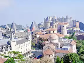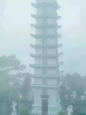 Linh Phong Zen Monastery is a Chinese-style temple that blends European architecture, located on Ba Na Hills. The monastery features a large bronze bell tower with nine floors, and each floor has bronze bells hanging at the four corners.
