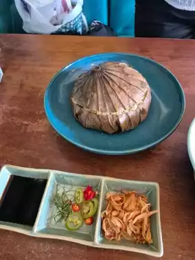 A soy sauce-based fried rice with a lotus leaf aroma