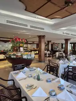 The breakfast restaurant at Furama Resort is conveniently located in the building right next to the reception. The spacious seating and open layout create a relaxed and pleasant atmosphere for enjoying your morning meal.