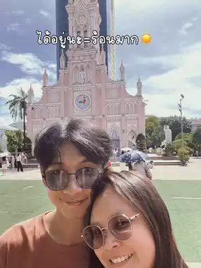 Discover the location of a popular tourist attraction among Thais, with the familiar name "Pink Church." Built in Gothic style, it stands approximately 70 meters tall. Its distinctive features include its tall, pointed spire and stained glass windows with sacred motifs. It's the only church in Da Nang built during the French occupation, making it a surviving example of early colonial architecture. We arrived just before lunchtime, so we snuck into a cafe to take some afternoon photos (I hadn't checked the opening hours).